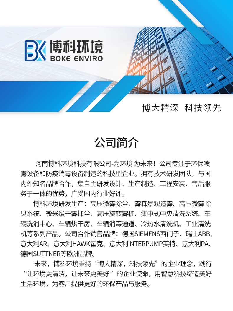 4. 河南博科環(huán)境科技有限公司-為環(huán)境 為未來!公司專注于環(huán)保噴霧設(shè)備和防疫消毒設(shè)備制造的科技型企業(yè)。擁有技術(shù)研發(fā)團(tuán)隊(duì),與國內(nèi)外知名品牌合作,集自主研發(fā)設(shè)計(jì)、生產(chǎn)制造
